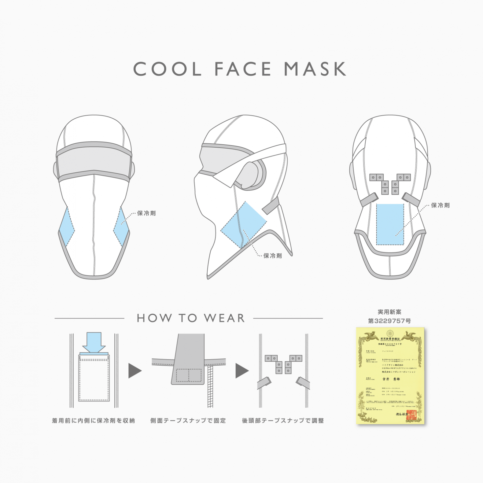 クールフェイスマスクは、保冷剤によって冷却機能を加速させる、吸汗速乾のフェイスマスクです。