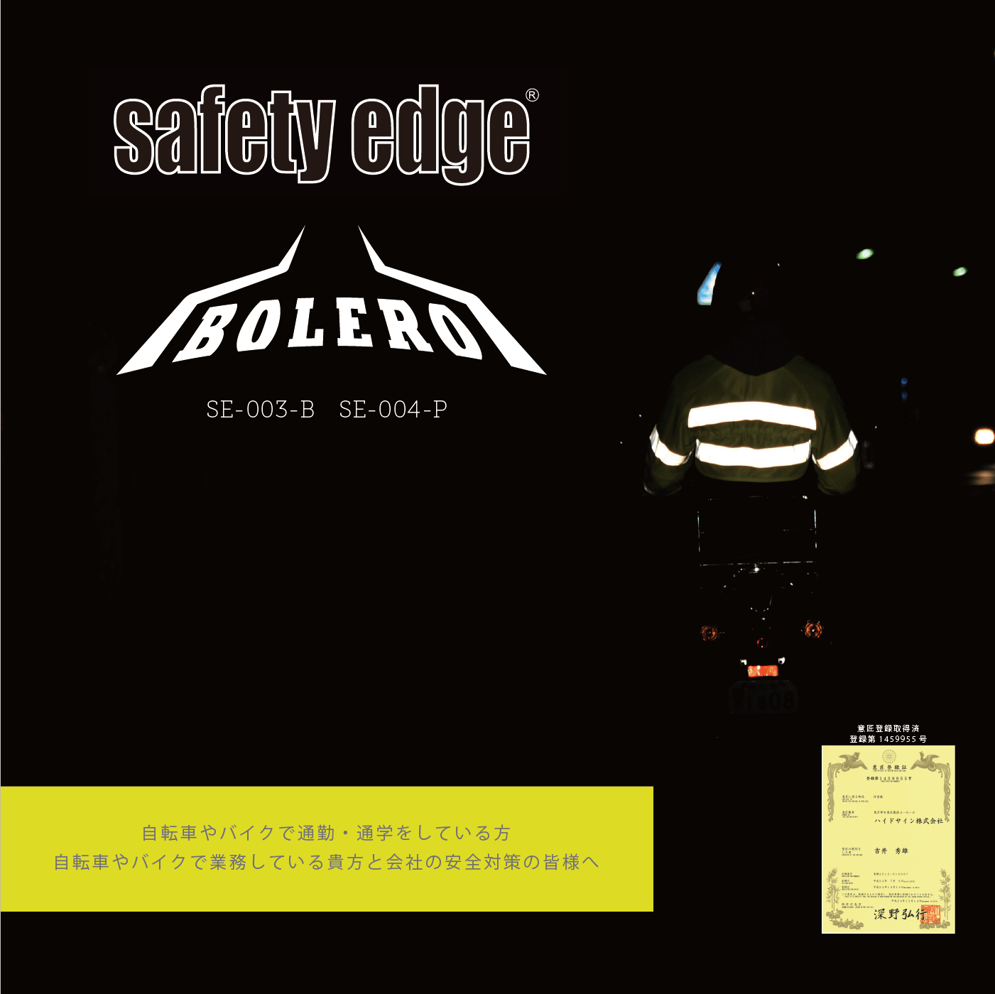 SE-003-B セーフティエッジボレロ ビーズタイプ(高輝度) ¥2,900(税抜) MADE IN CHINA ボレロタイプは欧州の安全規格のアイテムとして認められていないのでISO20471適合の製品とは言えません。ただし製品を構成する蛍光生地と再帰性反射材はそれぞれ資材としてISO20471適合品を使用しています。 SE-004-P セーフティエッジボレロ プリズムタイプ(超高輝度) ¥5,500(税抜) MADE IN JAPAN ボレロタイプは欧州の安全規格のアイテムとして認められていないのでISO20471適合の製品とは言えません。ただし製品を構成する蛍光生地と再帰性反射材はそれぞれ資材としてISO20471適合品を使用しています。