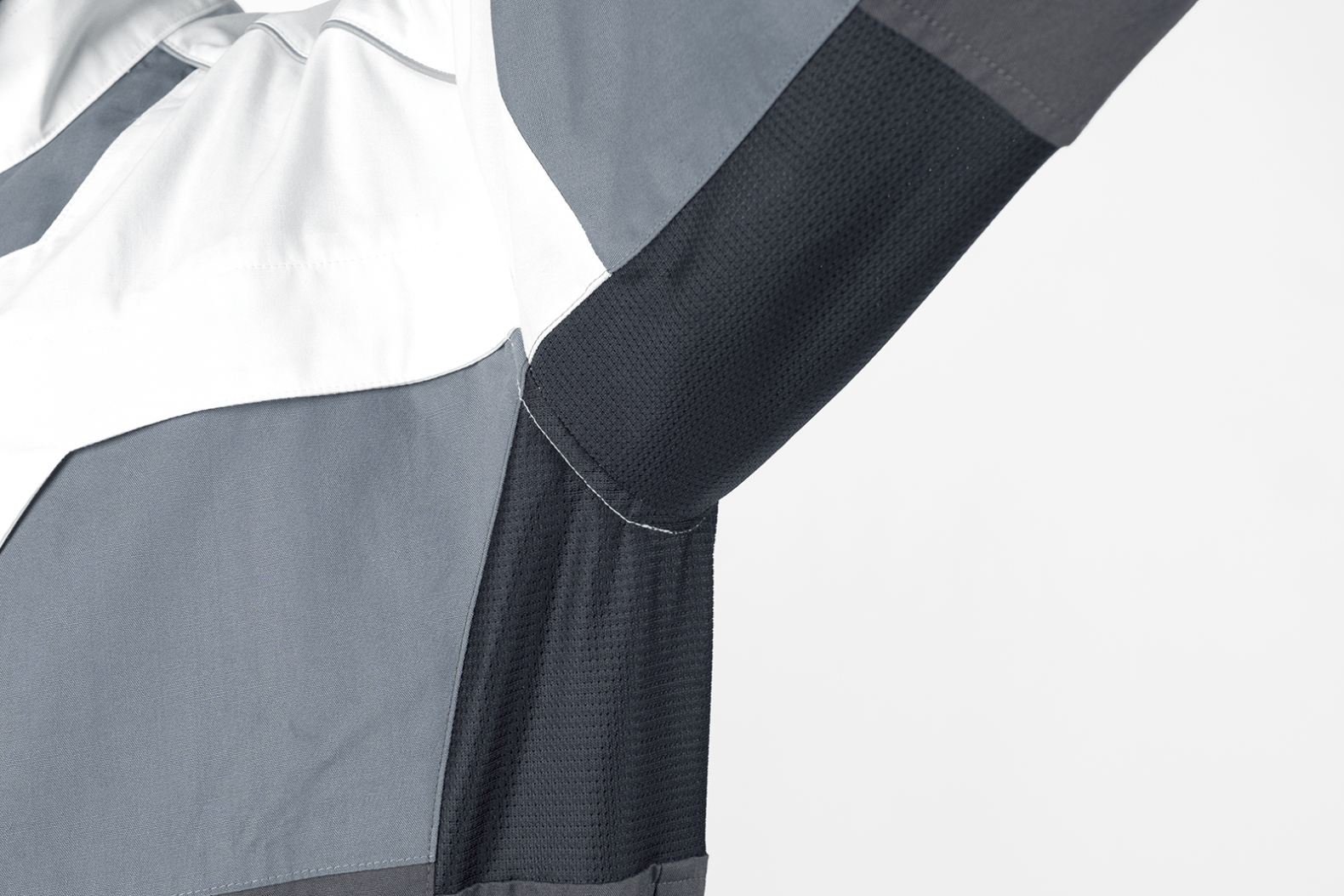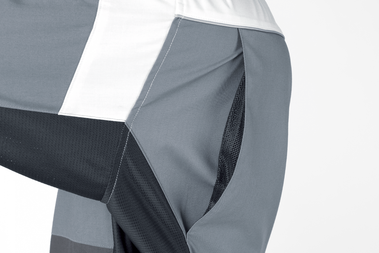 汗染みや運動性を考慮した配色と脇下ニット素材