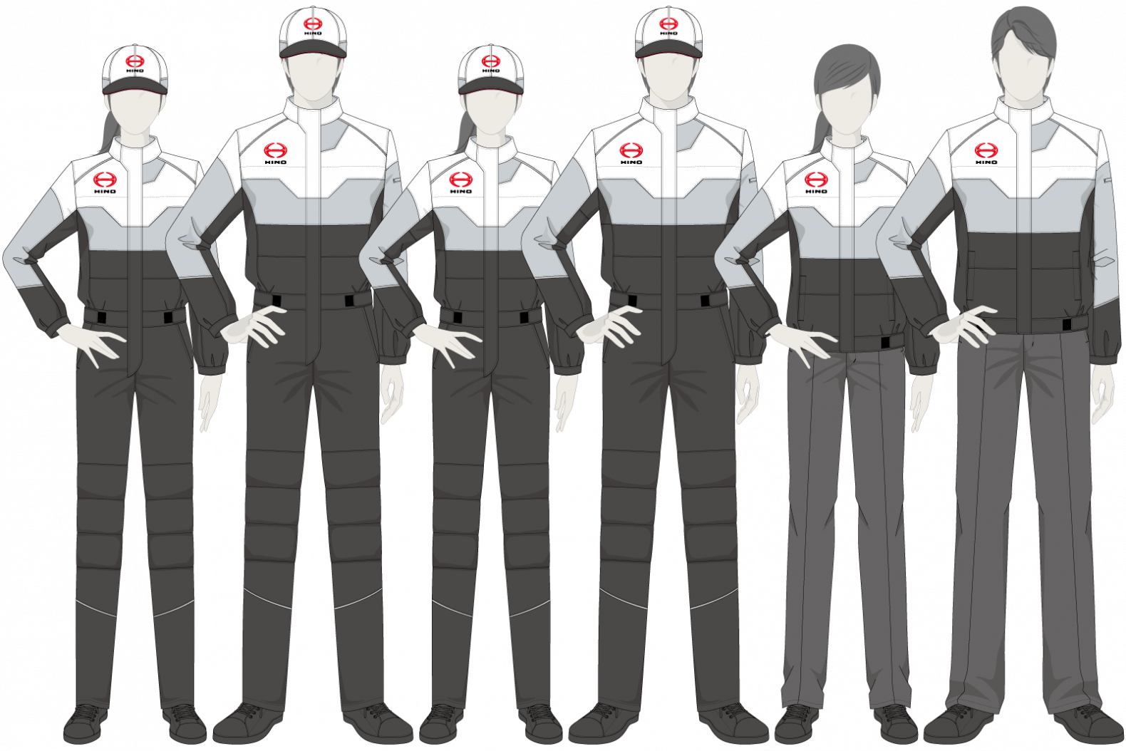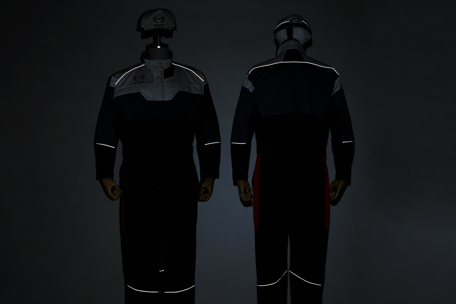 冷静さとメカニカルさをモノトーンで表現し、HINOのVIを際立たせる白配色が清潔感を演出します。
