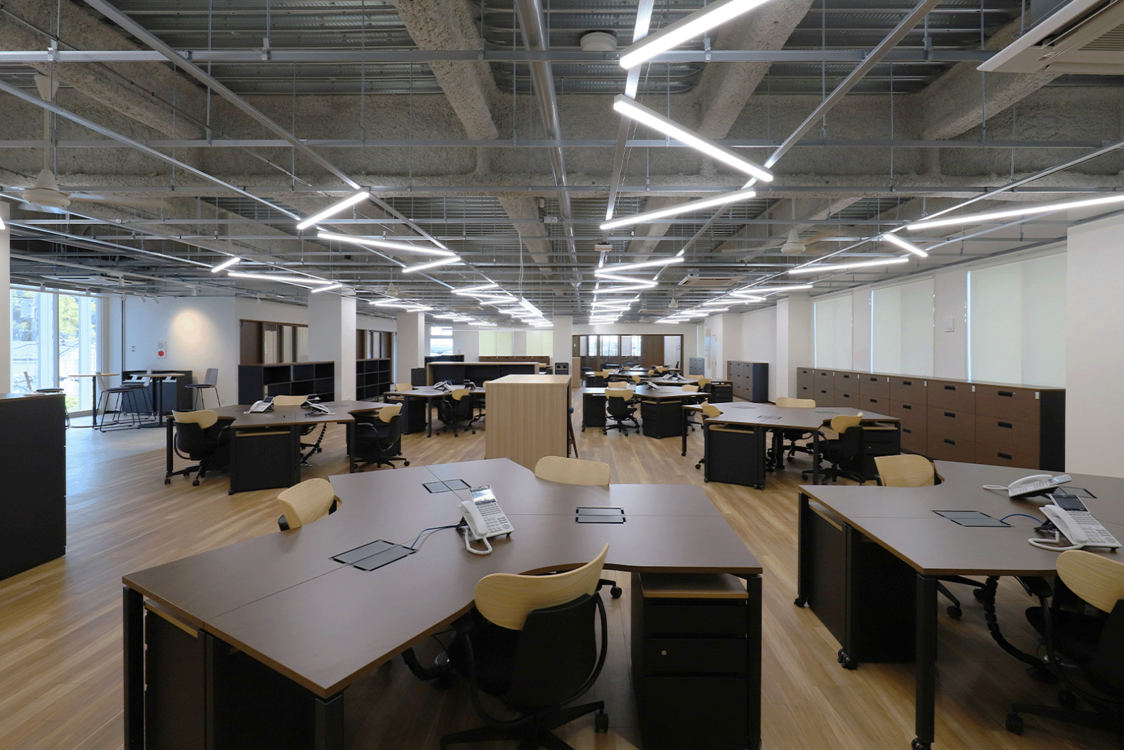 スケルトン天井でスタイリッシュかつ現代的なオフィス空間を構築。