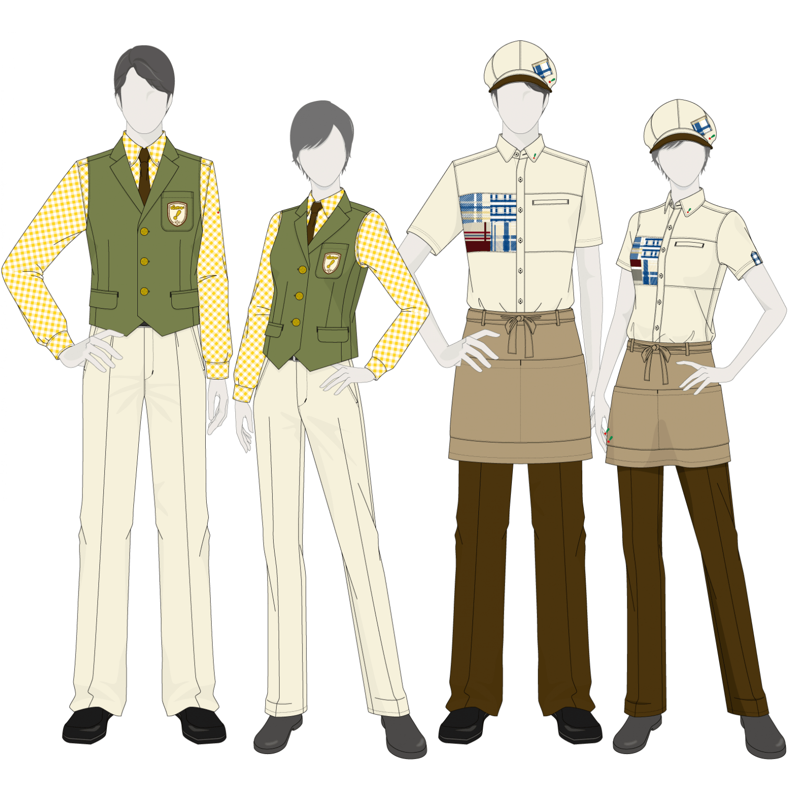 アルバイトスタッフ様用には、素朴感のあるベージュをベースに、「なつかしさ」を感じるマドラスチェックのパッチワークを胸に施しました。